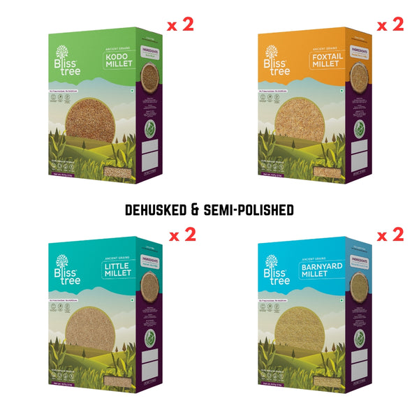 Package contains 16lb total - 2 x 2lb Semi-polished Kodo Millet, 2x 2lb Semi-polished Foxtail Millet, 2x 2lb Semi-polished Little Millet and 2x 2lb Semi-polished Barnyard Millet If you need...