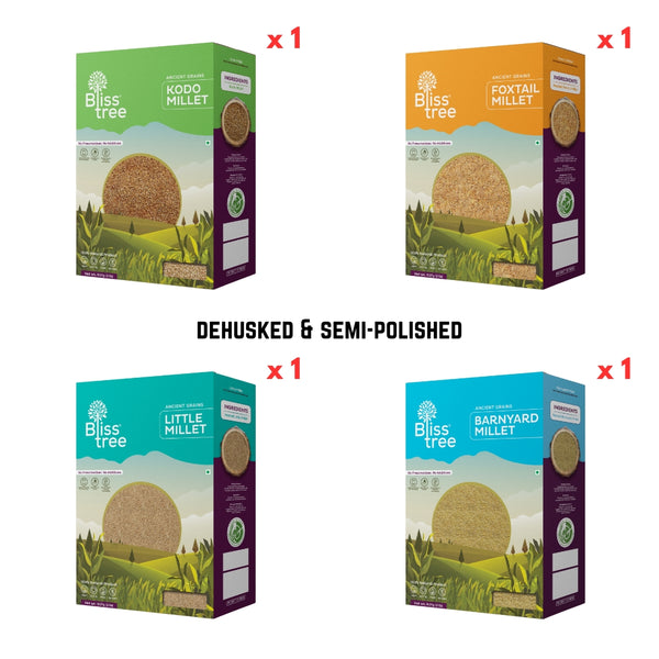 Package contains 8lb total - 2lb Semi-polished Kodo Millet, 2lb Semi-polished Foxtail Millet, 2lb Semi-polished Little Millet and 2lb Semi-polished Barnyard Millet If you need to customize this combo, please leave us a...