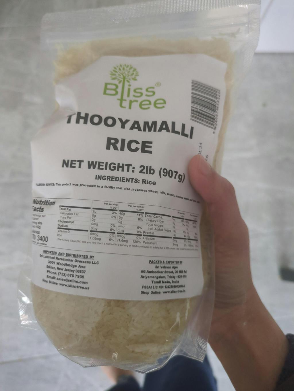 Ingredients: Thooyamalli Rice